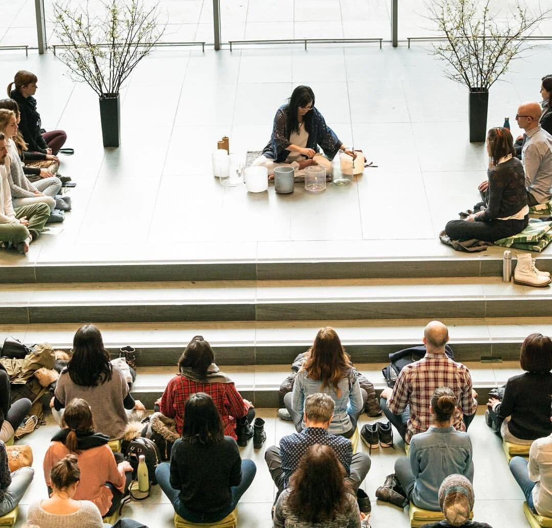 When you listen with focus and directed attention during a Sound Bath, that mindfulness starts to stay with you outside the room, permeating different areas of your life. With your newfound heightened level of awareness, you may begin to notice new details in your environment, or a spaciousness around your reaction to a stressful situation. Listening leads to an understanding, on a deeper level, of thoughts and feelings that come up internally, and situations and circumstances that arise externally, which leads to stronger connections to yourself or others. And that in turn can lead to greater compassion, expression, empathy and love.